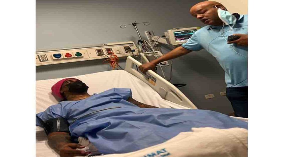 El merenguero de calle Antonio Peter De la Rosa mejor conocido como (Omega El Fuerte ) fue hospitalizado de emergencia el pasado domingo mientras se encontraba dando un show tras sufrir un desmayo producto del estrés según su manager.
