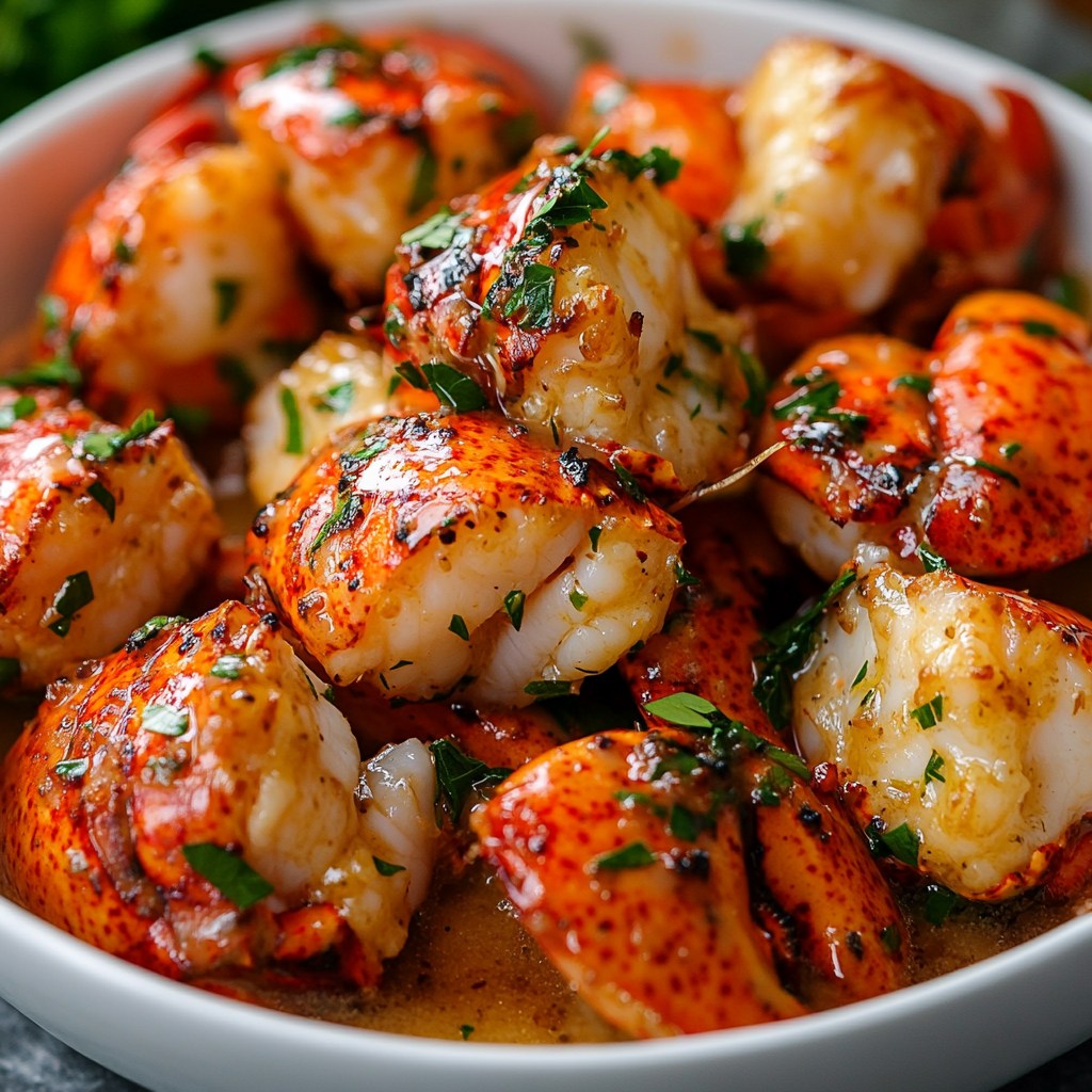 Bocados de Langosta Lujosos en Salsa de Mantequilla de Ajo Aromática