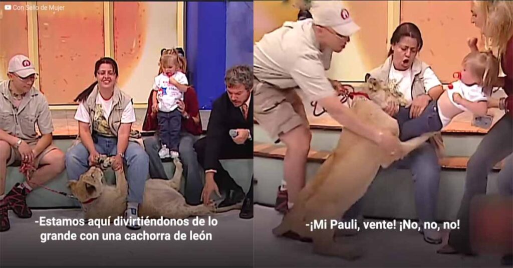 Una leona a la cual exhibían en un programa de televisión de transmisión en vivo, junto a una madre y su niña de aproximadamente unos 6 años de edad se llevaron el gran susto de su vida y es que la leona cachorra de 6 meses que se encontraba en un estado de tranquilidad, Reacciono de mala manera a los gritos de inquietud de la niña.