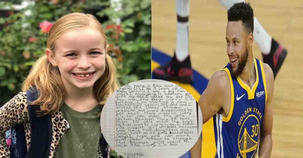 Una pequeña aficionada del basquetbol de tan solo 9 años de edad llamada Riley igual que la hija de Curry (Riley Curry) escribió una carta al famoso deportista mostrando su descontento para hacerle saber que no podía encontrar su zapato exclusivo en tallas de niña en la web de Under Armour, Marca patrocinadora de zapatillas de Stephen Curry una de las fabulosas zapatillas ‘Curry 5s para niñas.