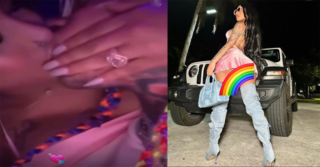 Estamos viendo una artista dominicana Yailin La Mas Viral bastante feliz al lado de su pareja Tekashi.